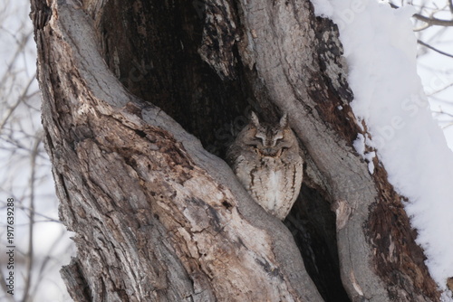 洞で寝るオオコノハズク
