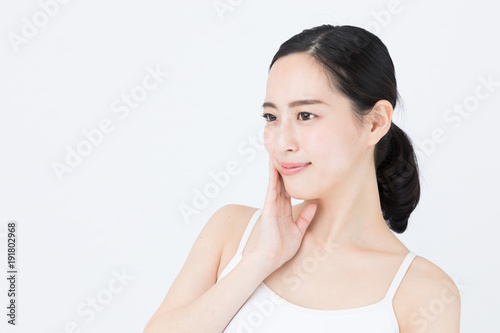 woman, people, make-up, make-up, skincare, cosmetic, health, beauty, bare skin, skin, camisole, alone, smile, young, japanese, asian, chinese, white, cut-out, background, copy space