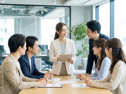 businessman, meeting, discussion, woman, man, spend, young, business, meeting, speaking, conversation, smile, office, teamwork, employee, boardroom, meeting, cooperation, communication, corporation, version, tablet, middle-aged, youth, indoor, team, corporate, consultation, suit, waist up, jacket, 30s, japanese, asian
