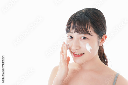 korean, acne, puberty, latex, young, pretty, cream, paint, chinese, copy space, beauty, white background, shower, bathe, foundation, camisole, asian, woman, make-up, washbasin, toilet water, este, face, ageing, japanese, care, student, skincare, cosmetic