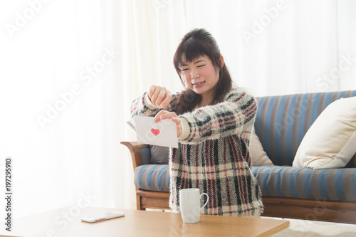 love letter, love, love, love, confession, heart, people, mind, peace, cordiality, caring, young, missy, portrait, sweet, 30s, indoor, asian, woman, youth, japanese, alone, pretty, face, couch, couch, home, casual, lifestyle, life, relax, seated, refreshing, light, indoor, room, break, broken heart, resent, dislike, oversight, anger
