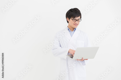 man, labcoat, contemplate, smile, personal computer, doctor, glasses, doctor, success, analysis, study, datum, management, laptop, computer, personal computer, doctor, medical care, chemistry, study, clinical, experiment, development, medicine, medicine, medicine, pharmacy, pharmaceutical, man, japanese, people, relax, asian, image, 30s, background, cut-out