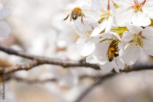 봄의 전령사 벚꽃과 꿀벌의 비행