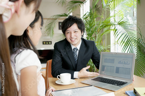 japanese, august, notebook, personal computer, indoor, rep, 30s, children, information, business, girl, smile, waist up, people, man, version, adult, man, sale, insurance, speaking