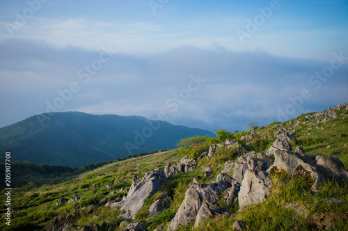 mountain, landscape, sky, nature, travel, cloud, green, blue, hill, way, wood, view, forest, mountain chain, limestone, rock