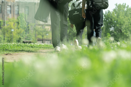student, plant, park, landscape, people, japanese, open air, young, leaf, green, student, sunny, man, uniform, boy, boy, shamrock, school