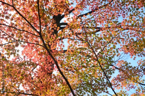 秋のカラフルな楓の葉が彩る