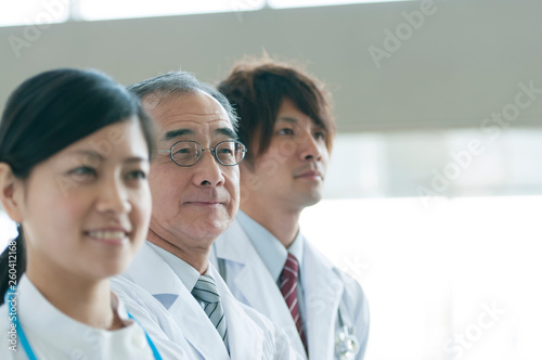 people, japanese, medical care, hospital, doctor, doctor, indoor, indoor, care, welfare, labcoat, man, 50's, doctor, copy space, nurse, nurse, nurse, woman, nurse, stethoscope, smile, gentle, light, hope, future