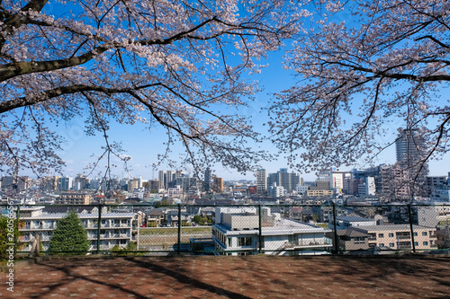 聖蹟桜ヶ丘 いろは坂桜公園と街並み 春