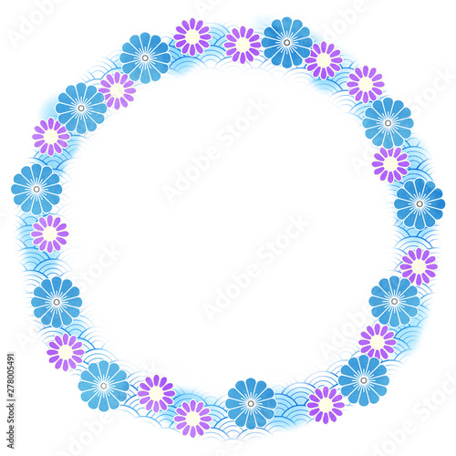 frame, peduncle, summer, sky blue, wave, flower, blue, pattern, garland, pattern, pattern, sum, circle, yen
