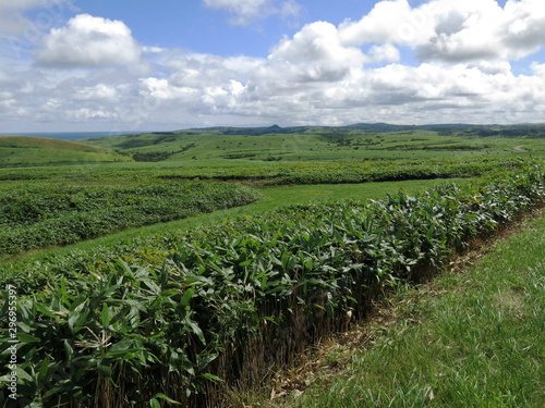 hokkaido, landscape, grazing, nature, grass, sky, field, green, blue, view, meadow, cloud, ranch, hill, grass, countryside, horizon, lovely, travel, route