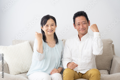 aged, aged, lively, couple, people, man, japanese, asian, japan, woman, homemaker, 50's, 60's, middle-aged, pension, retire, inheritance, heritage, life assurance, health insurance, health, two people, family, family, happy, house, live, home, grandparent, grandfather, nanny, smile, smile, couch, seated, hustle, cheer, cheer, hustle, effort, fist, hold