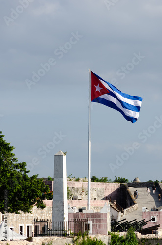 キューバハバナ カバーニャ要塞とキューバ国旗
