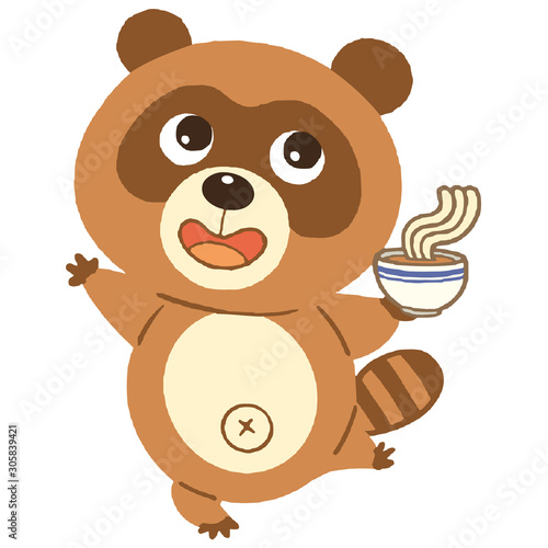 animal, sweet, illustration, brown, character, white, vector, udon, white background, smile, japan, dance, merry