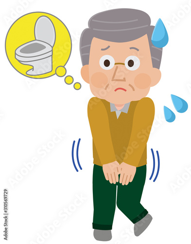 wc, close, grandfather, marode, man, sweat, aged, trouble, commode, pathology, urine, seek, sweet, illustration, vector, grandfather