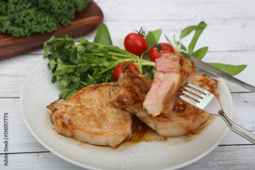 pork, chunk, steak, meat, food, dish, meat dish, pork, pig, pig, cut, cross section, saute
