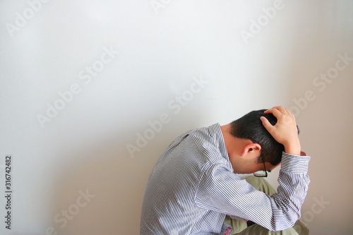 woman, business, portrait, stress, people, person, white, businessman, sad, face, pain, bother, office, weary, lovely, hand, head, depression, problem, businesswoman, sitting, 1, isolated, glasses