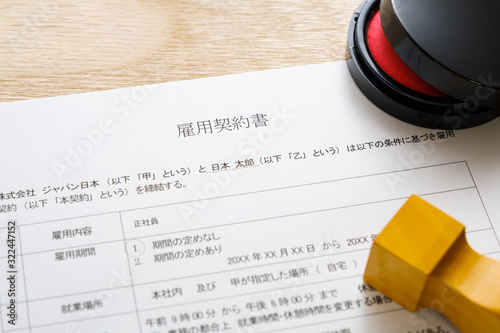 【写真素材】雇用契約書 労働条件 就職 転職 サイン 押印