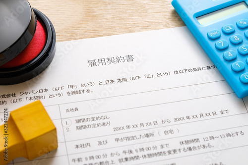 【写真素材】雇用契約書 労働条件 就職 転職 サイン 押印