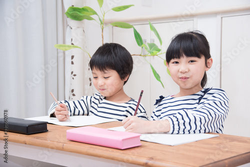 study, children, smile, girl, boy, training, homework, people, learning, young, room, lifestyle, children, children, house, noto, woman, children, indoor, two people, copy space, table, lead pencil, light, seated, home, pencil box, stationery, indoor, japanese, waist up, houseplant, two people