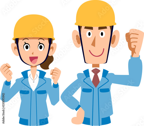 construction, architecture, working man, site, helmet, building site, construction site, lively, positive, smile, labor, couple, people, man, woman, construction industry, construction site, workwear, light, work, building trade, waist up, blue, flat, illustration, vector