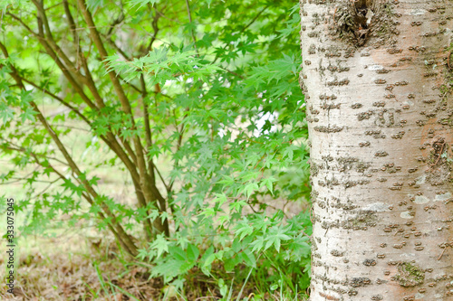 新緑と桜の木