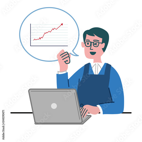 vector, personal computer, notebook, problem, man, man, father, father, family, people, business, expression, employee, telecommuting, work, money, share price, chart, cash, ascent, finance, currency, exchange, investment, sideline, nest egg, saving, economic, middle-aged, japanese, waist up, person, gesture, feeling, pose, illustration, alone