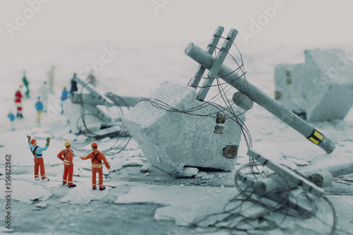 disaster, debris, trash, telephone pole, car, house, wreck, buckle, insurance, diorama, miniature, model, saving, buckle, wreckage, decay, damage, property, wire, concrete, typhoon, salvage, measure, flooding, breaker, copy space, natural disaster, quake, wreck, water damage, wreckage, crashing waves, blue, car, drill