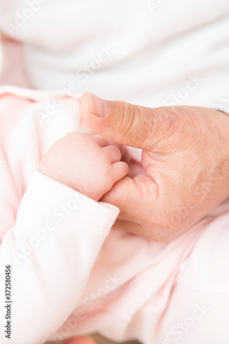 赤ちゃんと祖父の手