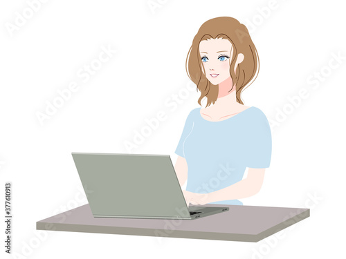 woman, personal computer, notebook, working, work, people, young, sweet, table, business, cyberspace, waist up, beauty, white, model, illustration, vector, operation, alien, japanese, beauty, clean, smile, fun, pleasant