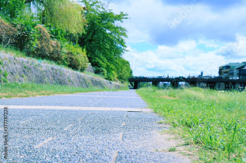 route, landscape, nature, sky, grass, green, wood, summer, field, countryside, forest, park, blue, country, meadow, way, cloud, footpath, pathway, kyoto, walk, stream