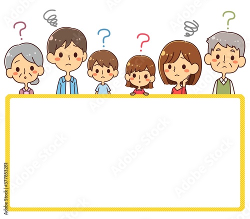 family, family, people, couple, grandparent, woman, man, grandfather, nanny, grandchild, father, mother, father, mother, large family, aged, aged, sweet, chum, kindergartner, girl, frame, illustration, problem, question mark