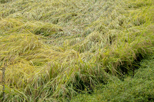 台風と雨でつぶされた稲 倒伏 被害