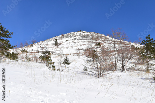 snow, mountain, peak, winter, snow, trek, climb, wood, blue skies, sky, blue, blue, white, white