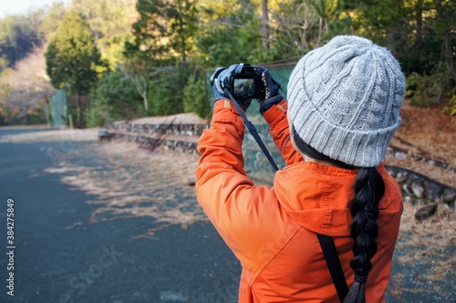 photographer, shot, camera, digital camera, winter, nature, mountain, hike, outdoors, woman, sky, photo, young, landscape, person, travel, adventure, leisure, down, hat, knit, wool, grey, orange, girl, pursuit, japanese, sweet, open air, japan, waist up, digital camera, hike, journey, copy space, woman, people, tour tourism, ranch, camp, camping, lifestyle, vacation, tourist attraction
