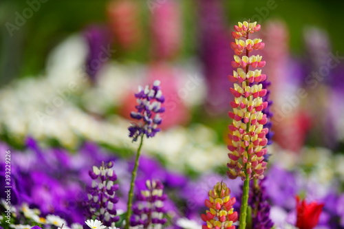 カラフルなルピナスの美しい花壇