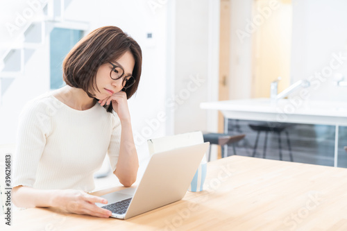 パソコンを見る女性 考える
