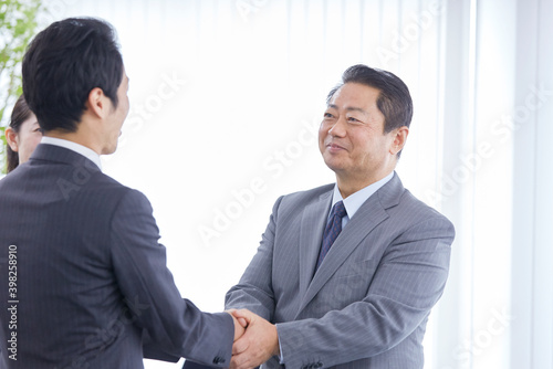man, businessman, office, smile, handshake, business, suit, contract, japanese, formation, parley, success, employee, young, middle-aged, corporation, president, boss, secondary, teamwork, cooperation, peace, greeting, cooperation, consensus, merger, fusion, work, trade, salaried employee, client, client, hold, team, staff, work, indoor, indoor, 30s, 50's