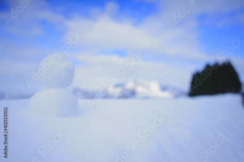 雪原にだんごっぱなの雪だるま