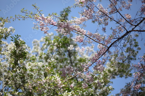 cherry blossom, sakura, spring, pink, wood, flowering, flower, sky, nature, branch, blue, bloom, plant, season, plant, garden, floral, warm, temperature, sunny, weather, blue skies, copy space, unmanned, park, hanami, travel, tour tourism, showplace, green