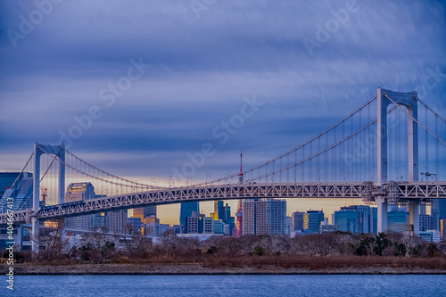東京都港区台場から見た東京湾の夕景