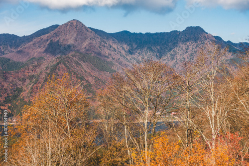landscape, fall, mountain, nature, fall, sky, forest, blue, wood, view, cloud, red, depression, green, panorama, yellow, hill, pigmentation, travel, season, scenic, natural, lookout, fuji, peak, climb, lake, grass, aspen, meadow
