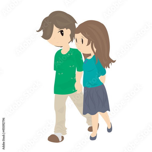 couple, lover, couple, walk, date, chum, young, two people, open air, man, woman, people, walk, white background, clip art, illustration, material, image, graphic, illustration, vector, vector graphics