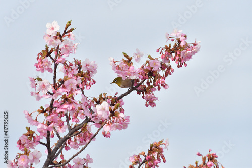 cherry blossom, sakura, sakura, bird, background, spring, flower, japan, wood, landscape, pink, lovely, pretty, clean, sky