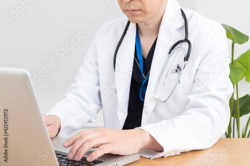 remote, cloud, remote, consultation, training, diagnosis, exam, inquiry, diagnostic, doctor, doctor, doctor, patient, clinic, hospital, surgery, medical care, corona, marode, app, application, labcoat, man, net, cyberspace, online, web, web, personal computer, notebook, room, light, japan, japanese, infection, version, speaking, conversation, confidence, communication