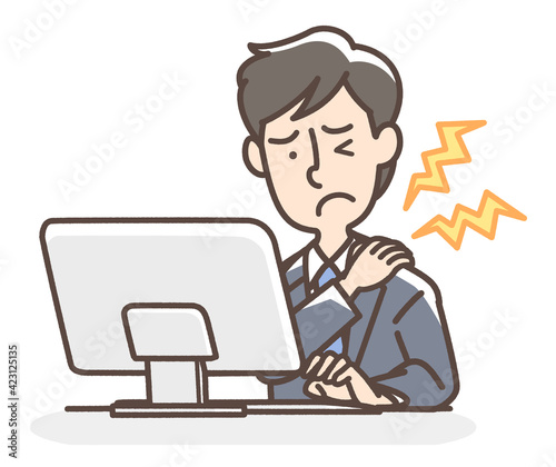 pain, shoulder, back, nerve, arm, fatigue, stress, work, housekeeping, smartphone, nervous, office, personal computer, attitude, business, neck, input, telecommuting, painful, overwork, meeting, man, man, suit