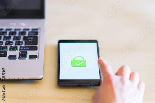 login, telecommuting, unlock, smartphone, online, access, security, smartphone, certification, rock, key, woman, man, japanese, people, notebook, personal computer, image, digital, clearing, business, communication, technology, mobile, cyberspace, password, secret, secret, smart, office, secret, risk, protection, bank, net, bank