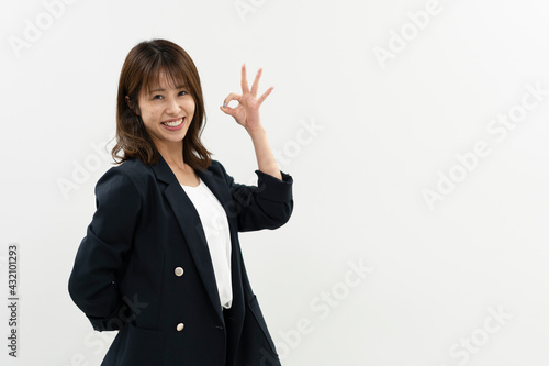 woman, business, businesswoman, young, hand, isolated, happy, finger, smile, white, success, lovely, portrait, ok, gesture, people, signs, person, pointing, beauty, up, displayed, lady, smiling, suit