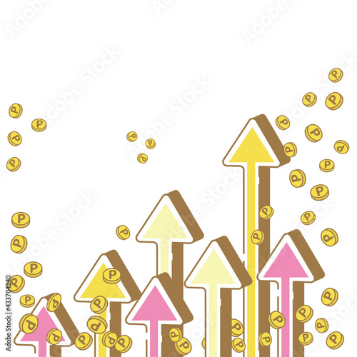 point, coin, arrow, upward, clearing, crunch, shopping, illustration, smile, sweet, money, cartoon, success, joyful, enjoyment, saving, happy, promotion, currency, cash, shopping, fashion, purchase, shoe, bag, bag, smartphone