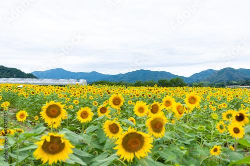 yellow, sunflower, sunflower, summer, july, field, community, lively, fun, overcast, material, combination, sunflower, field, flower, sky, nature, agriculture, summer, sun, green, blue, plant, landscape, light, flowering, meadow, sunny, leaf, growth, farm, lovely, rural, beauty, crop